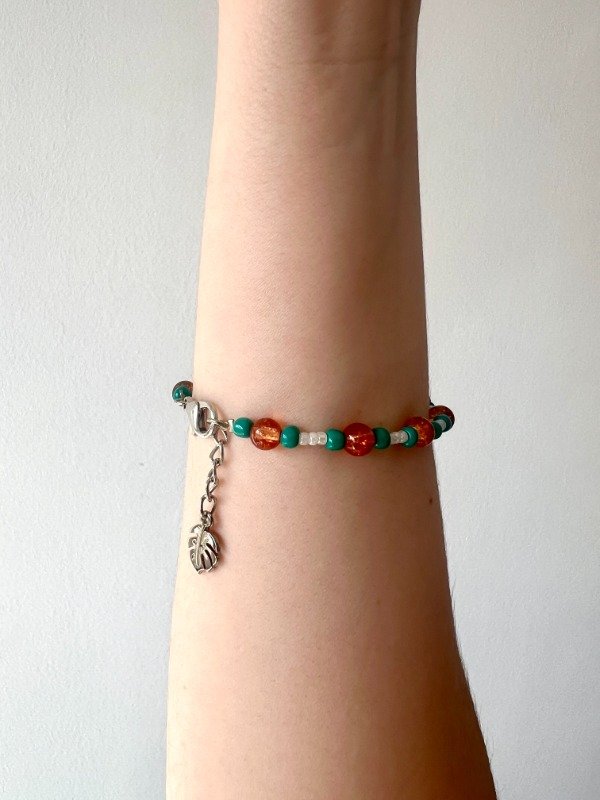 Pulsera combinada de mostacillas y mostacillas de vidrio.